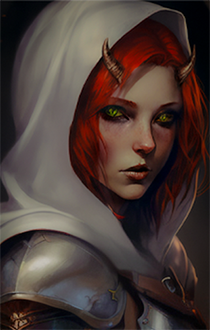 Sirene is a tiefling paladin of Ilmater, the Crying God, patron of endurance and martyrdom. While she is still new to her responsibilities and uncertain of herself, she is a loyal follower of her faith and devoted the protection of the innocent. At the same time, the stigma of her infernal heritage has made her a lonely and withdrawn individual who desperately seeks the comfort of friendship and trust.